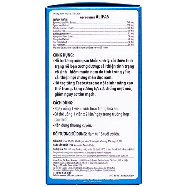 Viên uống Men’s Ginseng Alipas Ecogreen tăng cường sinh lực phái mạnh (30 viên) là gì ??
